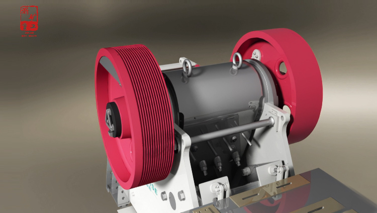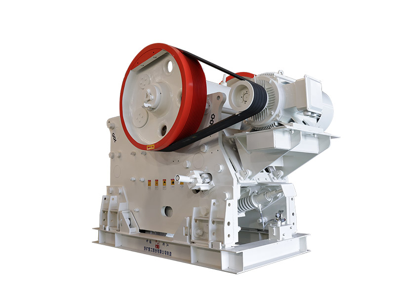 CJ系列顎式破碎機工作時采用的是曲動擠壓型的工作方式,電動機驅動皮帶輪傳動,通過偏心軸使動顎前后上下運動。當動顎上升時,肘板與動顎間夾角變大,從而推動動顎板向固定顎板接近,同時物料被壓碎或劈碎,達到破碎的目的;當動顎下行時,肘板與動顎夾角變小,動顎板在拉桿和彈簧的作用下,離開固定顎板,此時已破碎物料從破碎腔下口排出。隨著電動機連續(xù)轉動,破碎機動顎作周期運動壓碎和排出物料,實現(xiàn)連續(xù)生產。